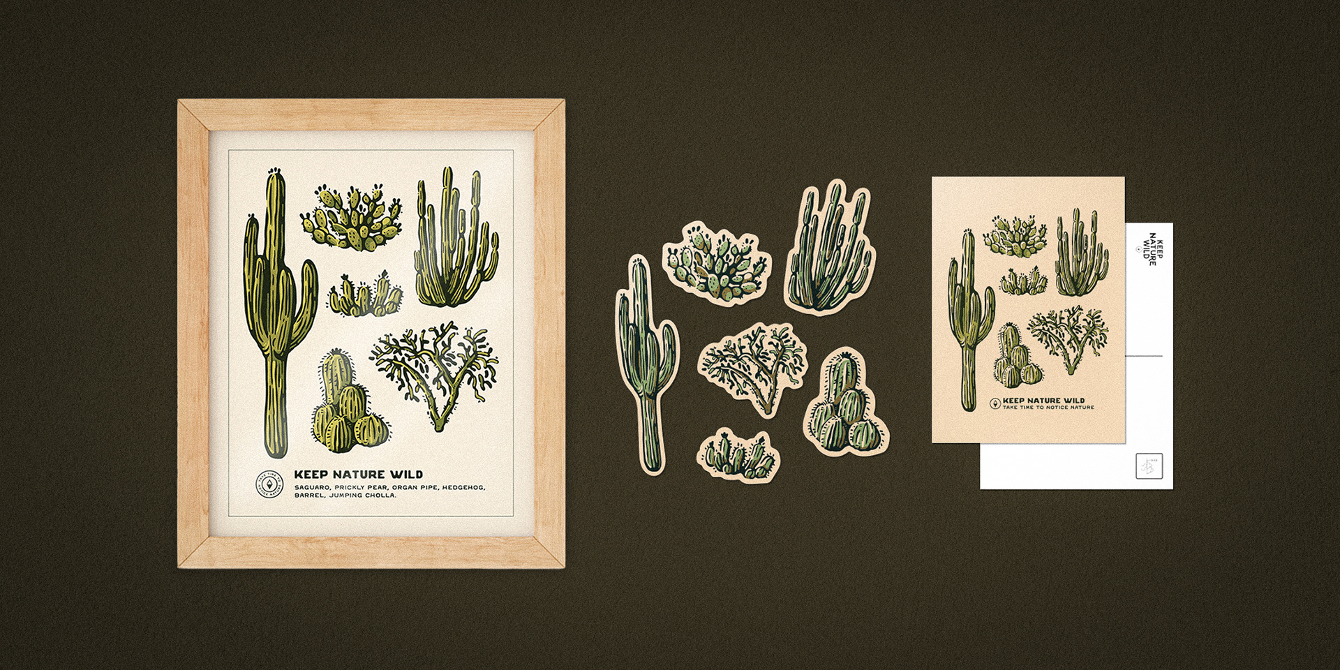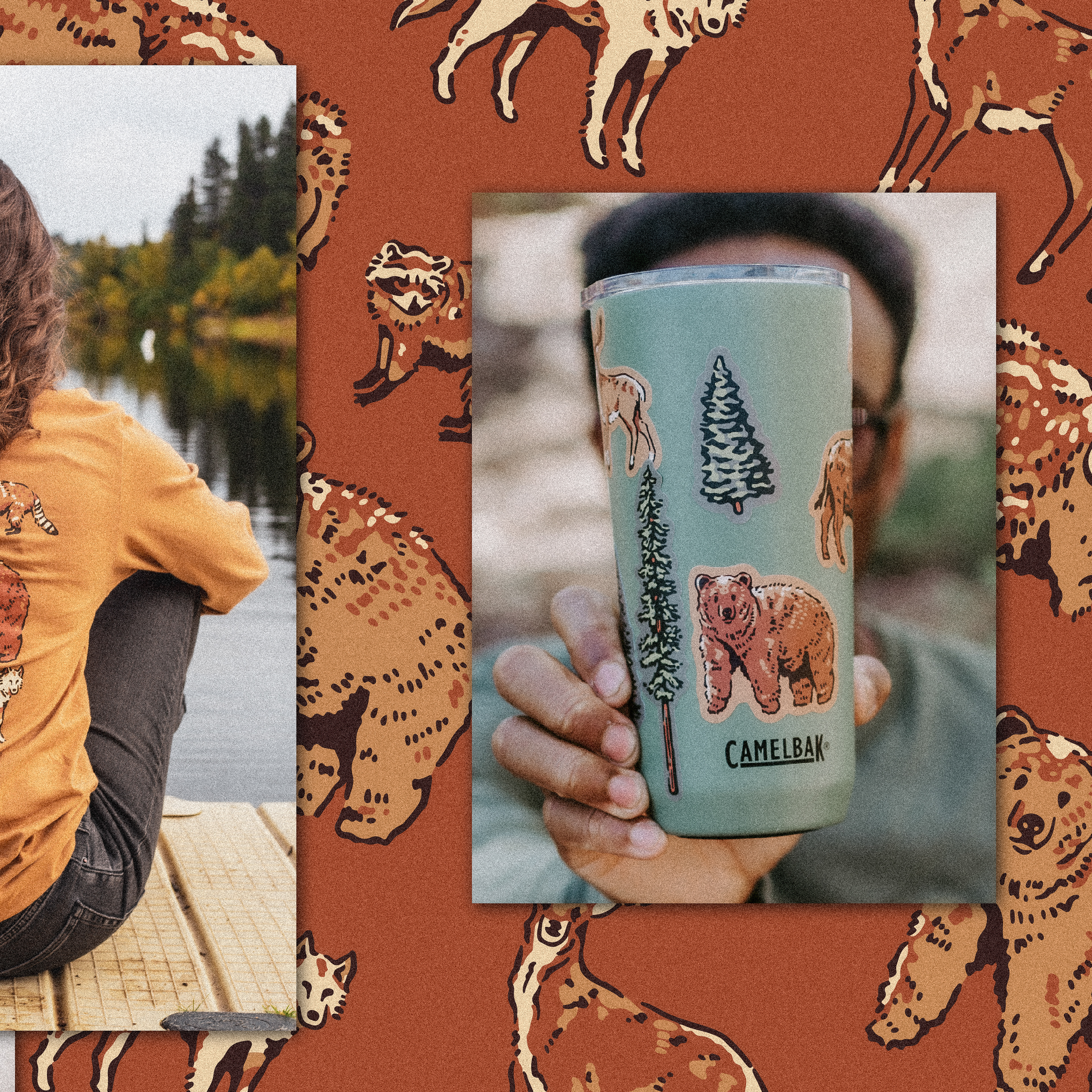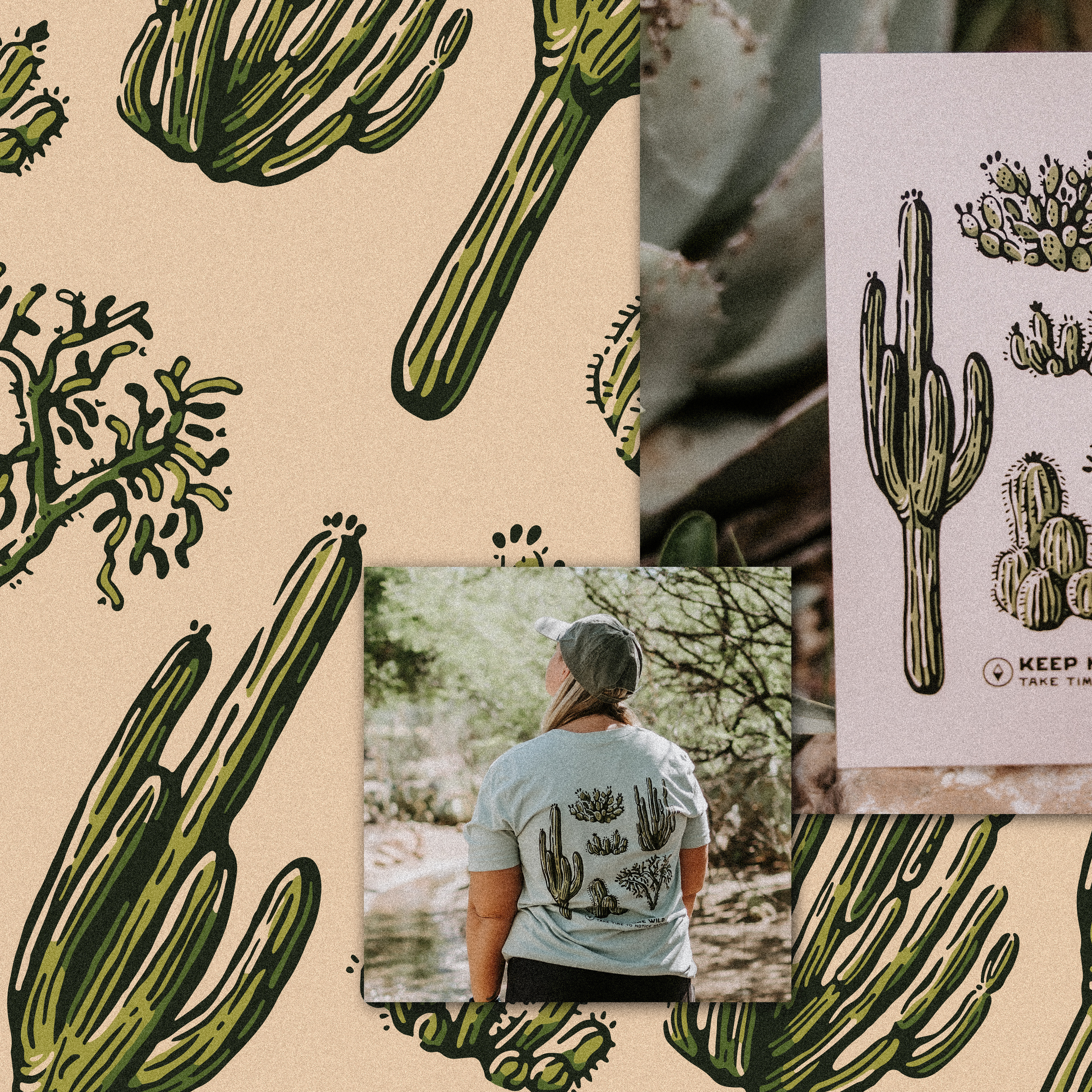 This collection was inspired by vintage catalogs and field note sketches from the open trail. I had the chance to research different varieties of North American flora and fauna during the ideation process for this project. Sold at Chandler Scheels, REI Co-op, Phoenix Sky Harbor, Cheers of Sedona, and more.