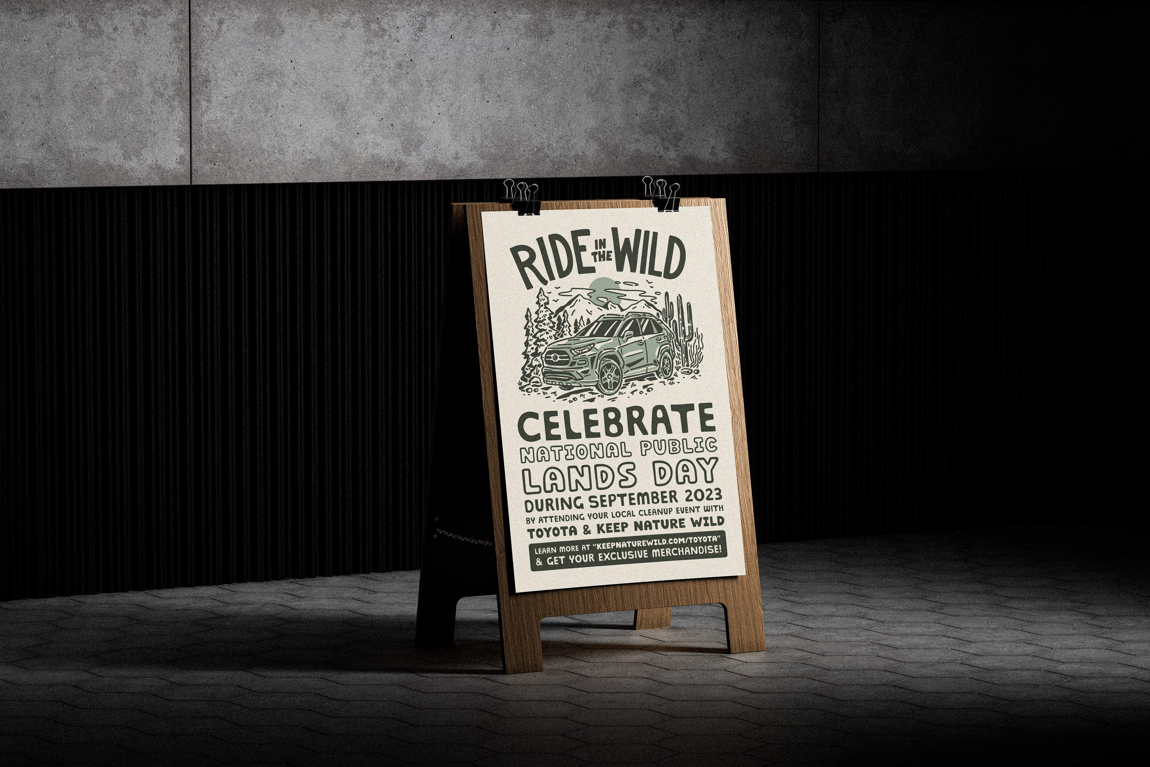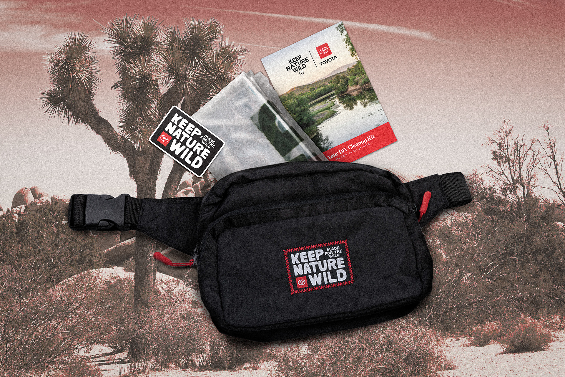 Toyota came to Keep Nature Wild to create limited-time, exclusive co-branded merchandise to help inspire their users to find ways to use their Toyota vehicles to celebrate National Public Lands Day. For this partnership, DIY clean-up kits and merchandise were made available for purchase at the in-person west coast regional cleanup events for the month of September.